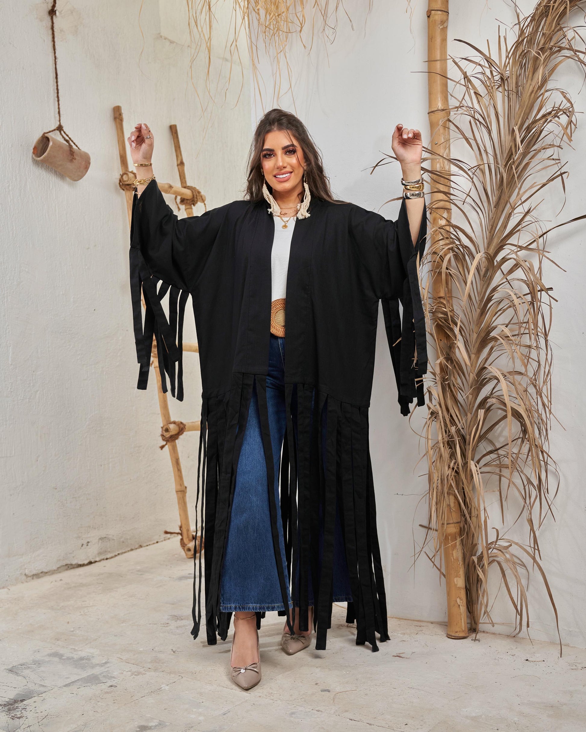 Our Fringe Linen Kimono is now available – effortless elegance with a boho touch!”