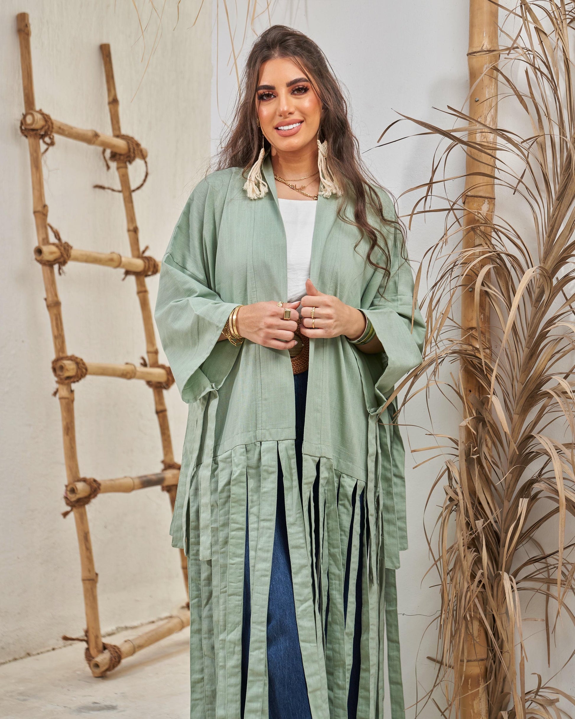 Our Fringe Linen Kimono is now available – effortless elegance with a boho touch!”