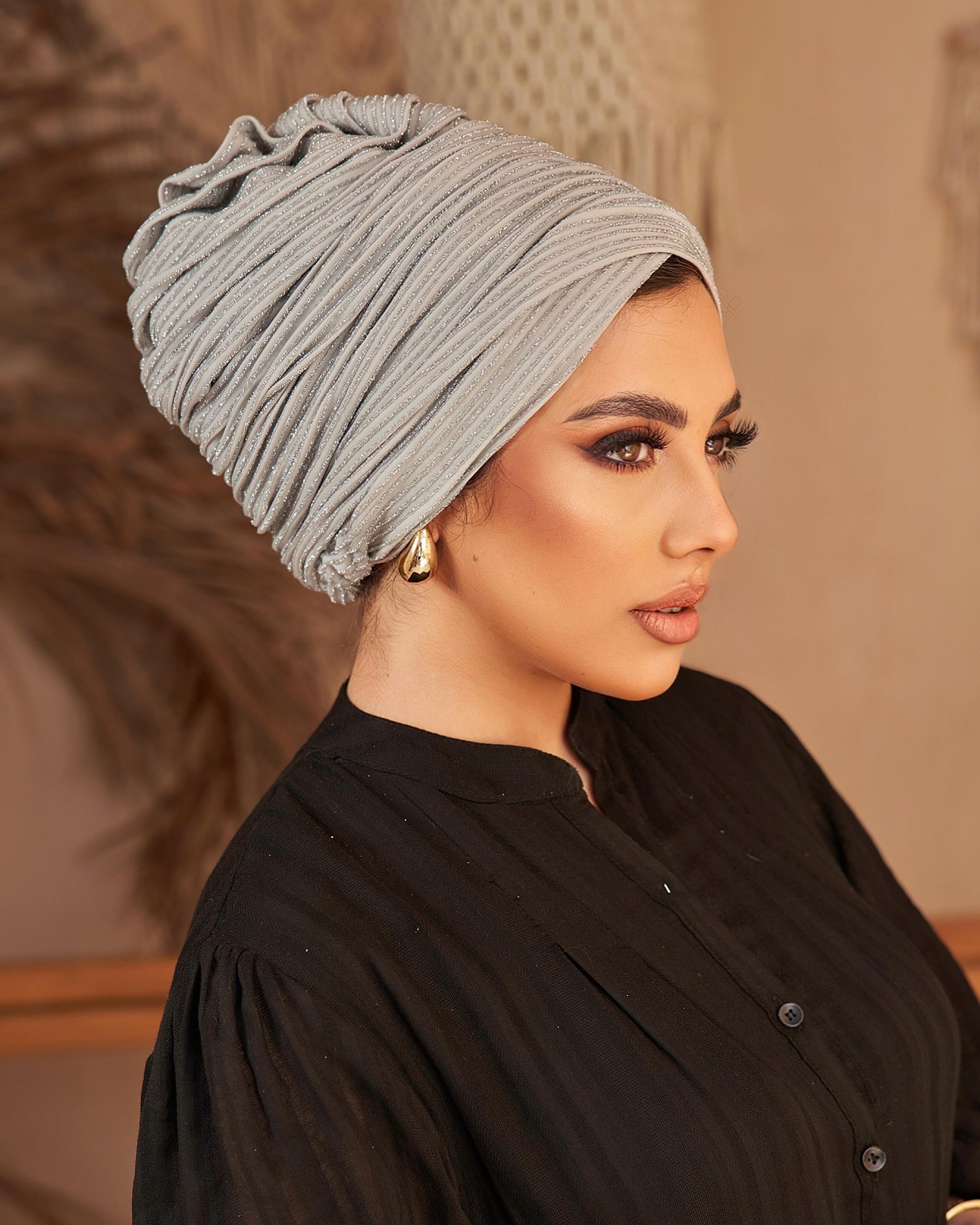 A one-piece turban featuring layered ruffles that resemble a rose from the back. Made from soft, comfortable fabric, it adds a feminine and modern touch to your everyday look or special occasions.